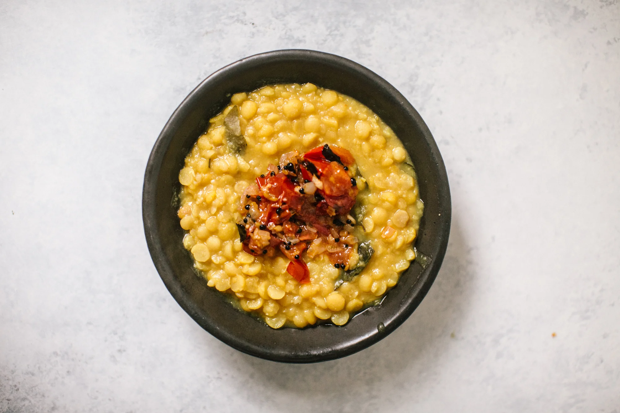 Creamy yellow lentils with tomato and ginger (Hesaru Bele Thovvay)
