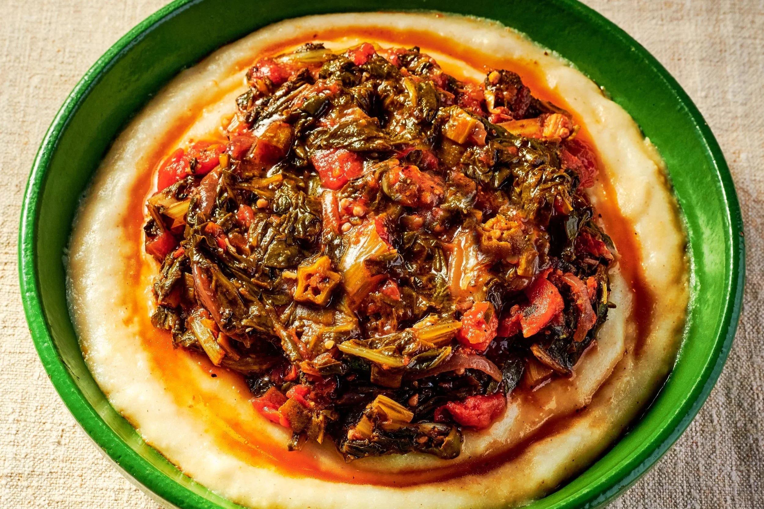 Koosto Iyo Baamiye (Swiss Chard and Okra Stew)